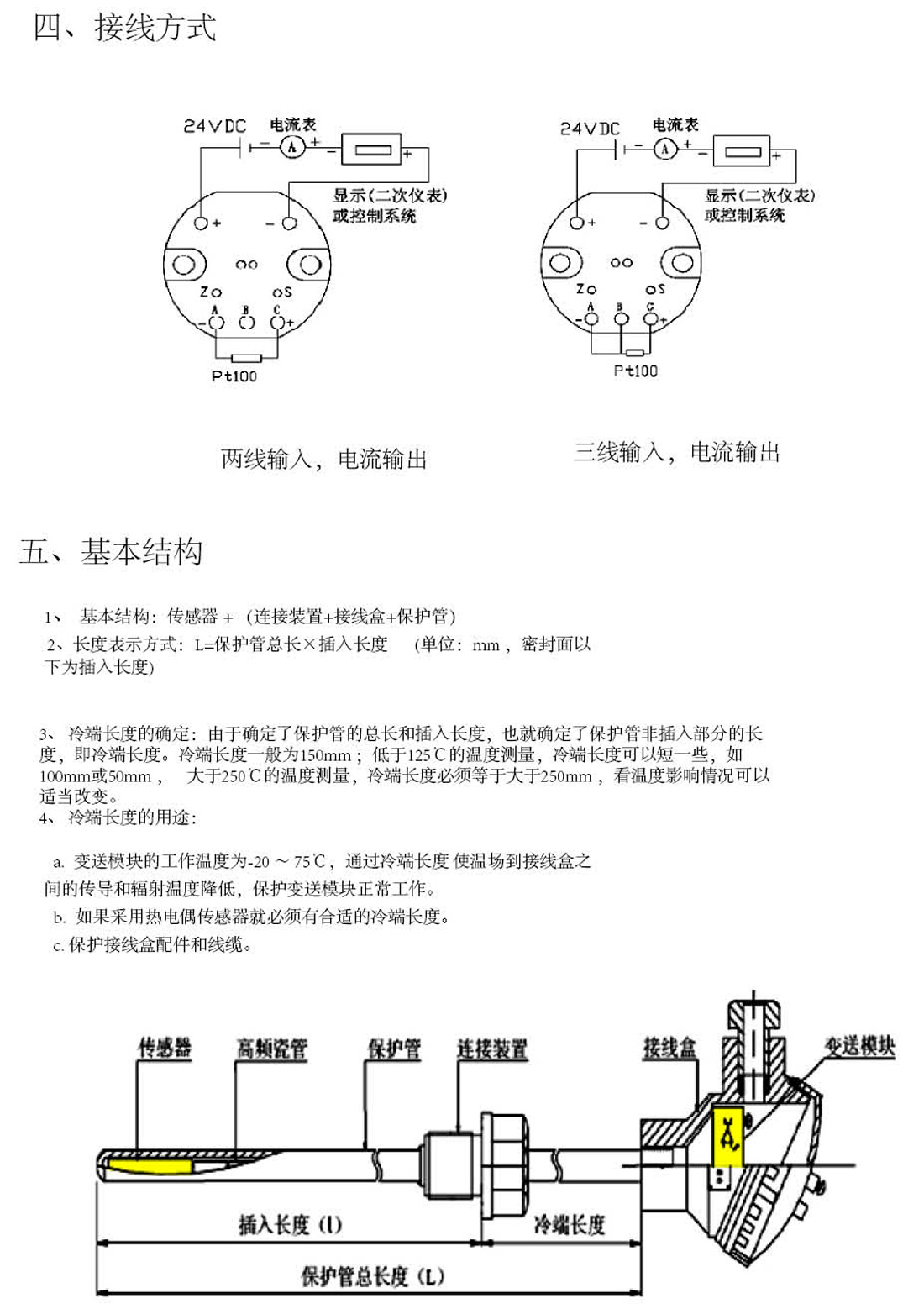 JDWZP系列一體化溫度變送器由測溫探頭、溫度轉(zhuǎn)換模塊、保護(hù)外殼三部分組成。測溫探頭采用高阻型Pt100鉑電阻,通過內(nèi)部轉(zhuǎn)換模塊的穩(wěn)壓濾波、運(yùn)算放大、非線性校正、V/I 轉(zhuǎn)換、恒流及電源反接保護(hù)等電路處理后, 轉(zhuǎn)換成與溫度成線性關(guān)系的電信號輸出,產(chǎn)品廣泛應(yīng)用于石化、電力、冶金、醫(yī)藥、食品等工業(yè)領(lǐng)域的測溫過程控 制,配合儀表或 PLC 組成計(jì)算機(jī)集散測控系統(tǒng)。